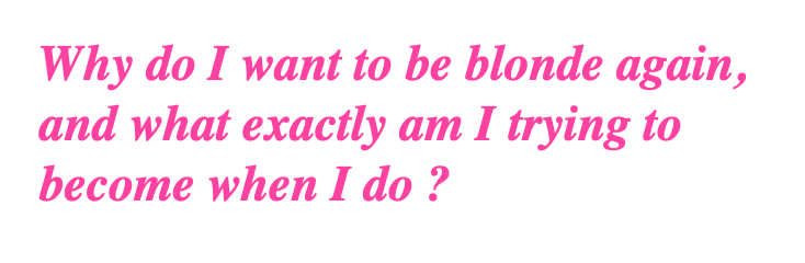 But that only made clear what the real problem was. Not blondness itself, but the impulse to adjust myself in order to manage other people’s perception. I’m no longer interested in doing that. I’m not interested in performing seriousness just to be read as intelligent. I already am.