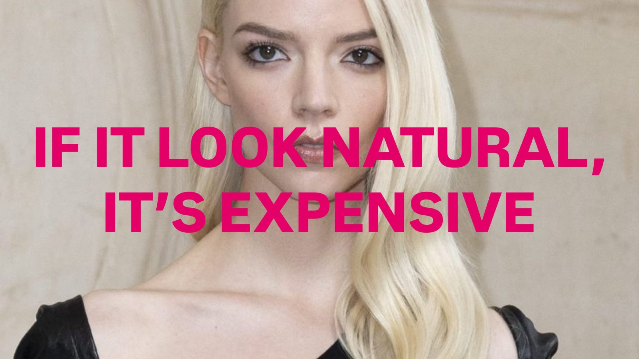 Visible dark roots, once a failure of maintenance, are now sometimes staged, controlled, aestheticized. To sustain that level of blondness is to prove something. Not just taste, but consistency, access, control. Anya Taylor-Joy embodies it perfectly, that almost translucent platinum that reads as effortless until you remember she is naturally a brunette. The closer a blonde gets to white, the further it moves from natural and toward something almost synthetic, almost unreal, which is precisely why it reads as powerful.